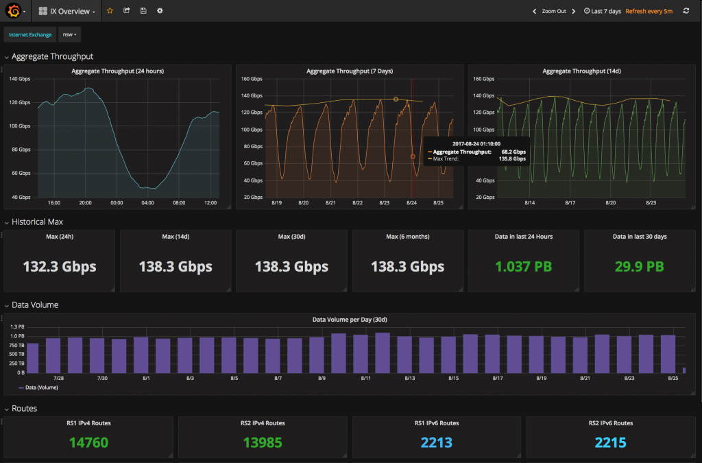 We have made the three dashboards displayed in this blog public to all members at https://metrics.ix.asn.au. We’re very interested in your feedback and you can send your feedback to noc@internet.asn.au.